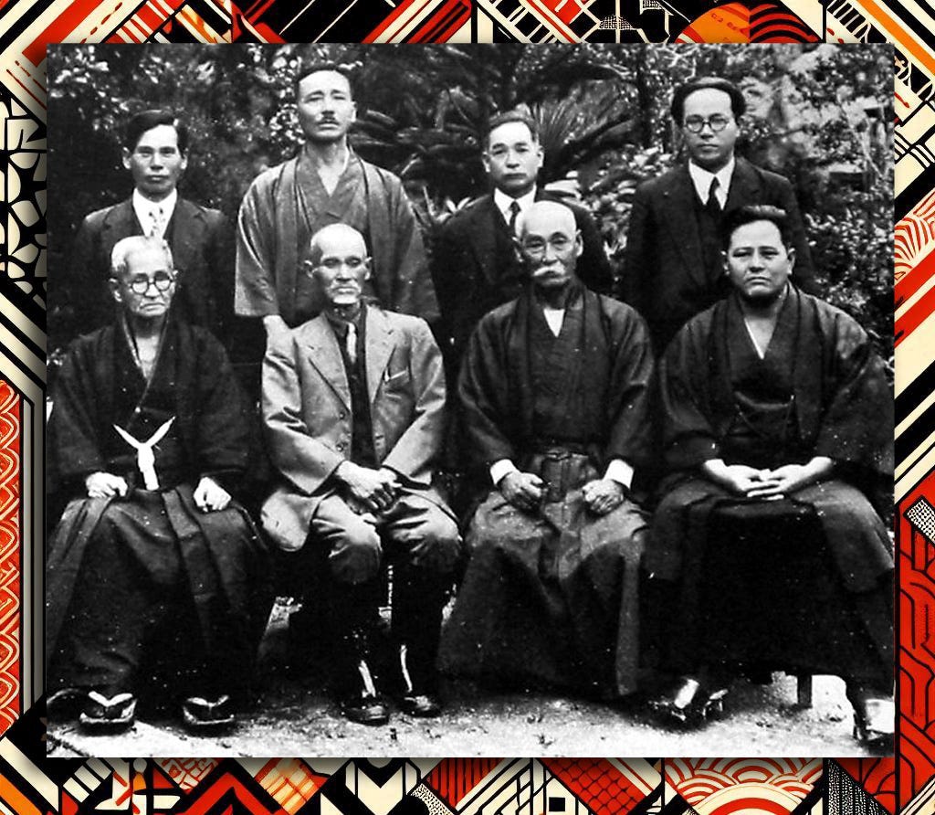 Header image: Okinawan karate masters in 1936. Front row L to R; Kyan, Yabu, Hanashiro, Miyagi. Back row L to R: Shiroma, Maeshiro, Chibana, Nakasone.