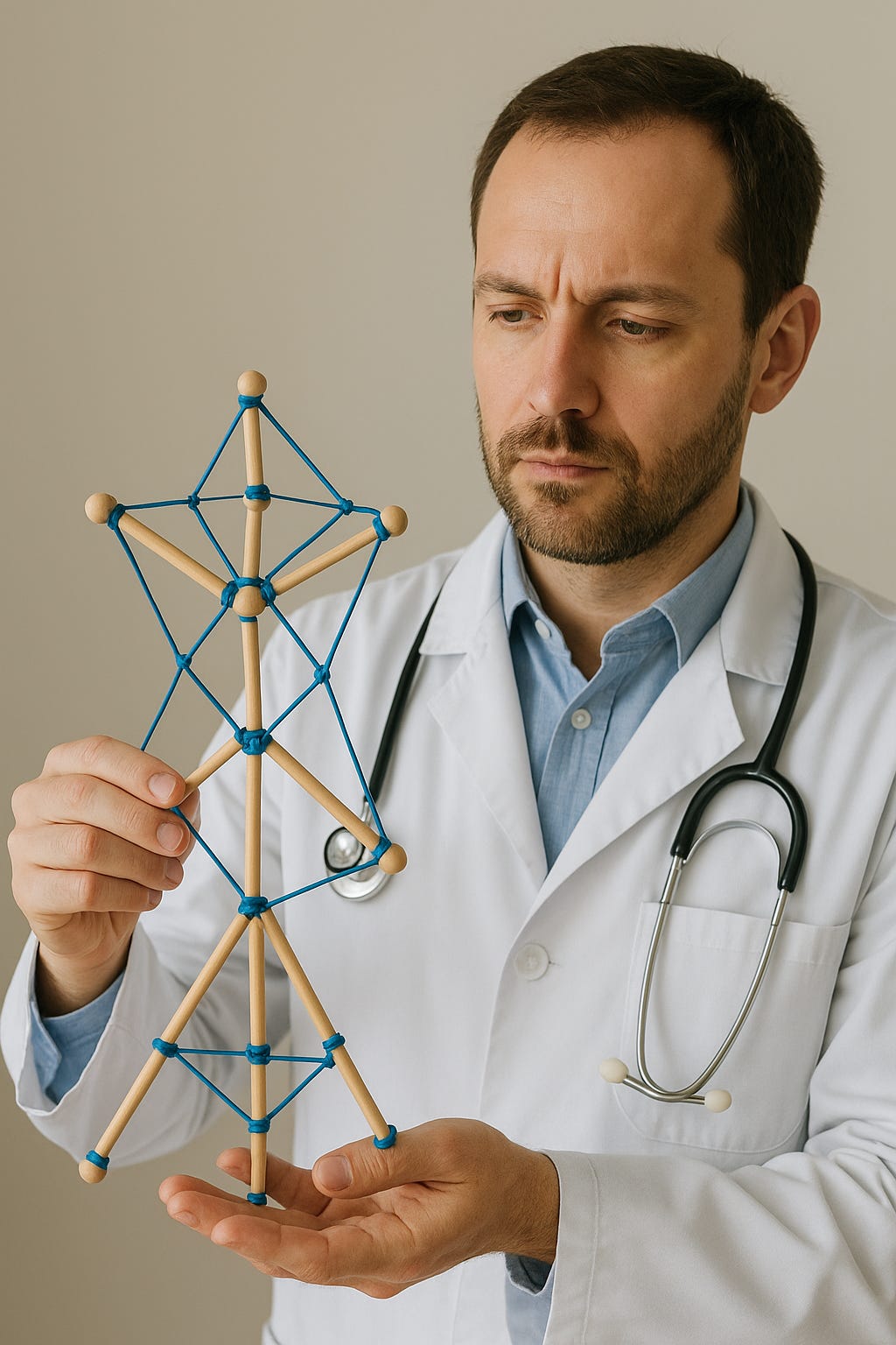 Tensegrity models explain how all parts are interconnected.