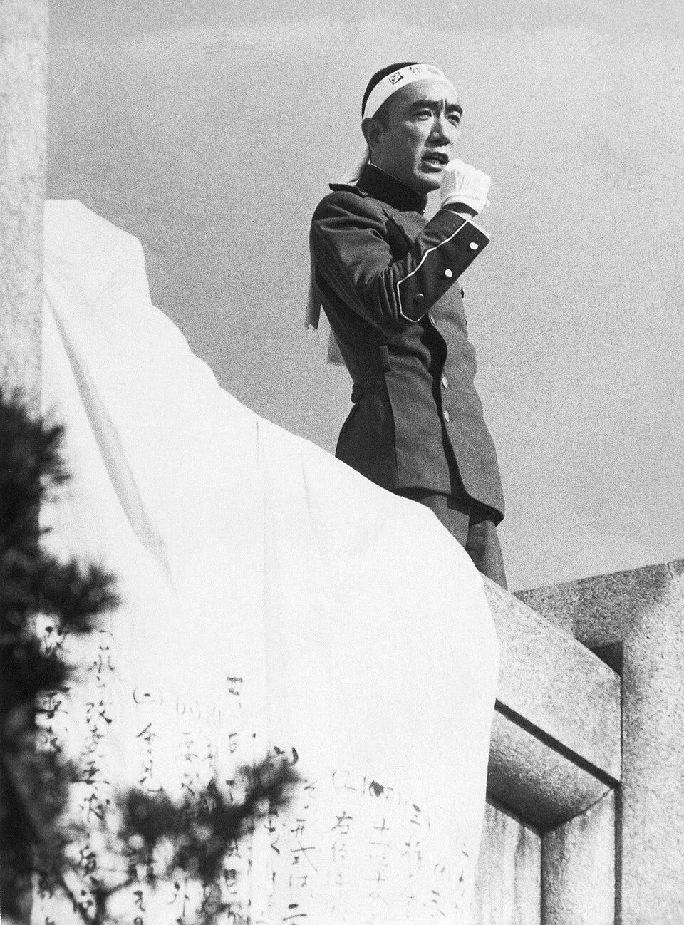 Mishima on the balcony giving his speech.